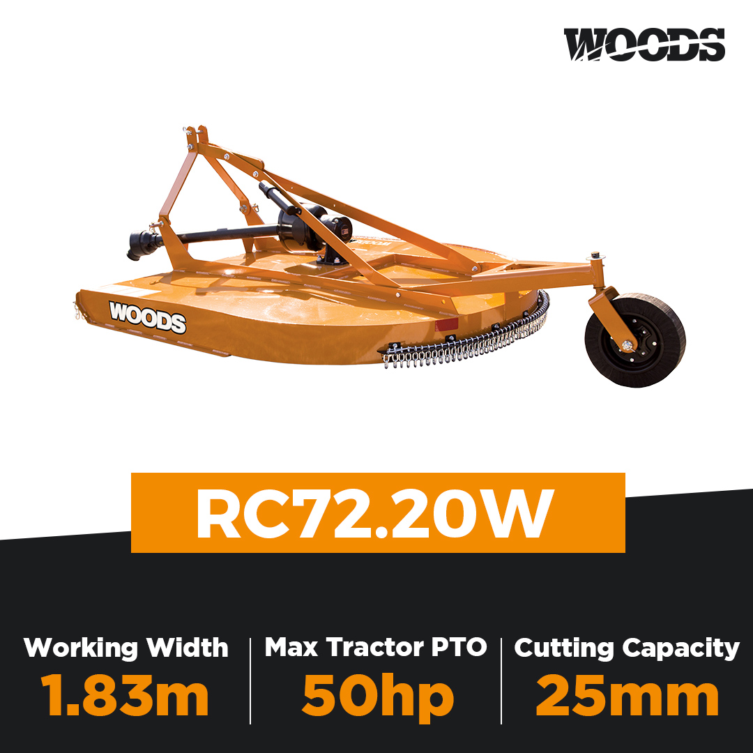 The RC series is a light duty slasher series produced by Woods. The RC series is suitable for tractors ranging between 15hp and 50hp PTO. This series will cut up to 25mm thick material and has a 50hp gearbox. It comes with a 3-year limited gearbox warranty. Woods Equipment is built in the United States of America with American steel. All parts are available in Australia. The RC series of Woods slashers come with a three year warranty on the gear box.